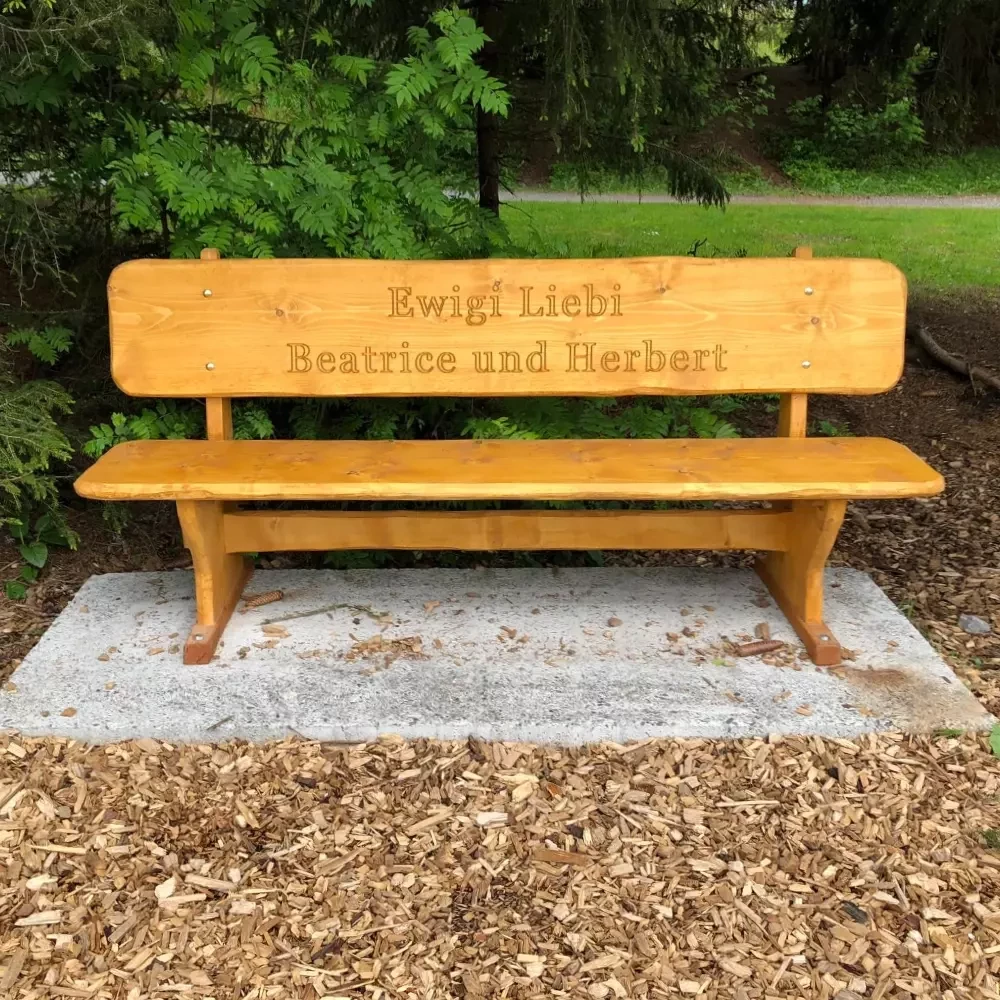 An einigen Orten in der Schweiz stehen Holzbänke mit dem Schriftzug "Ewigi Liäbi". Oft sind sie wie auf dem Bild zu sehen langen Beziehungen gewidmet.