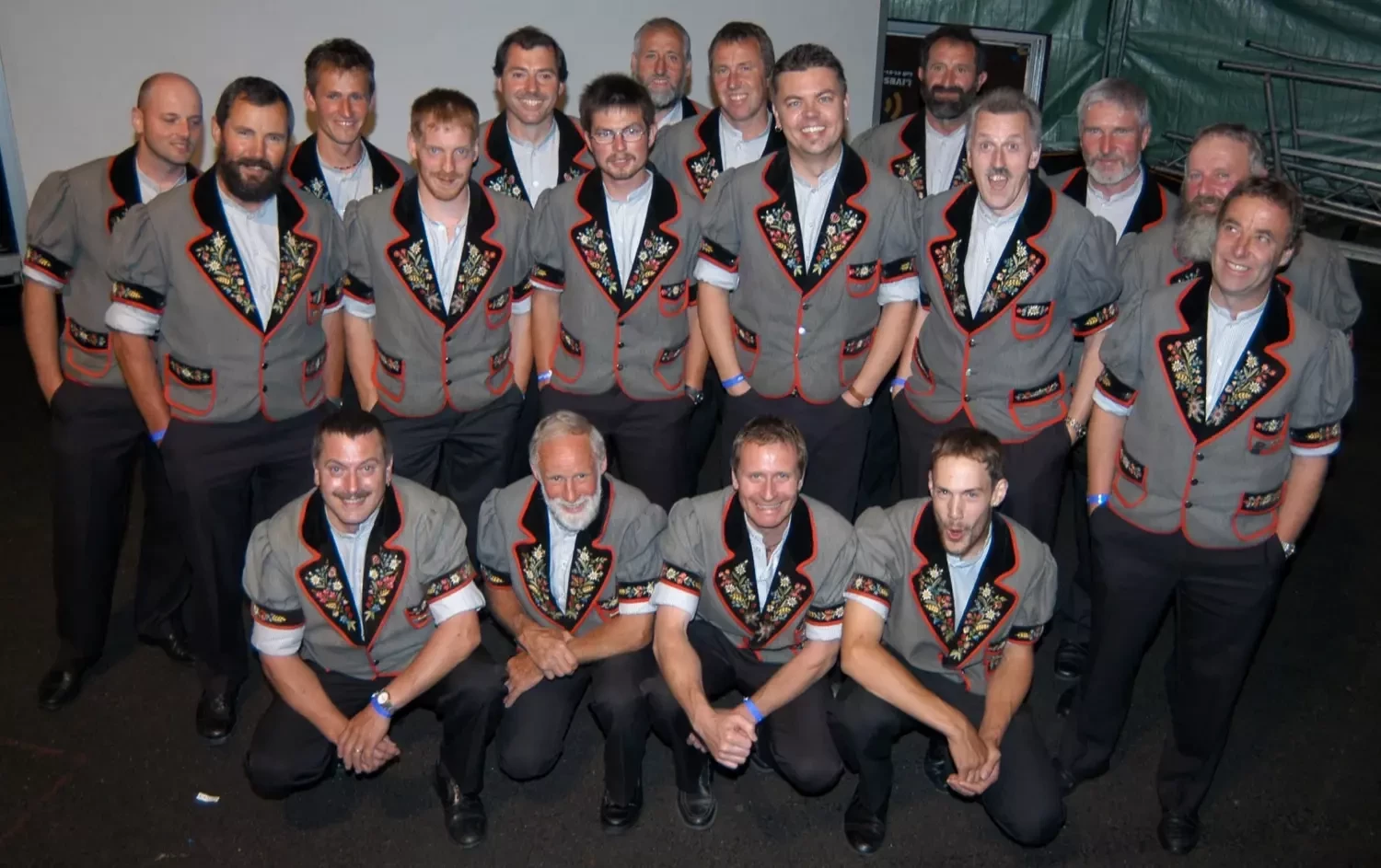 Bild: Padi (mittlere Reihe, 4. von links) mit dem Jodlerklub Wiesenberg anlässlich ihres Auftritts am Openair Hochybrig im Jahre 2007.